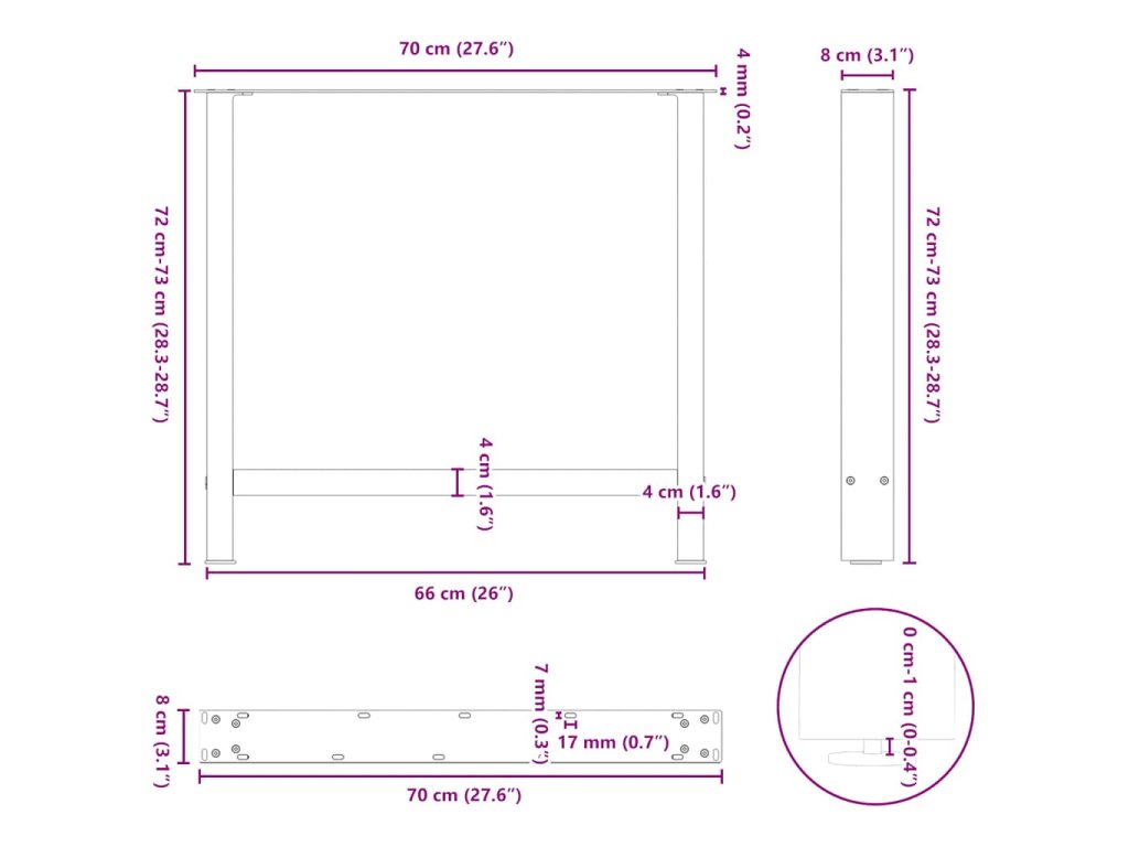 Nohy k jídelnímu stolu z přírodní oceli 2 ks 70 x (72-73) cm ocel 4013311