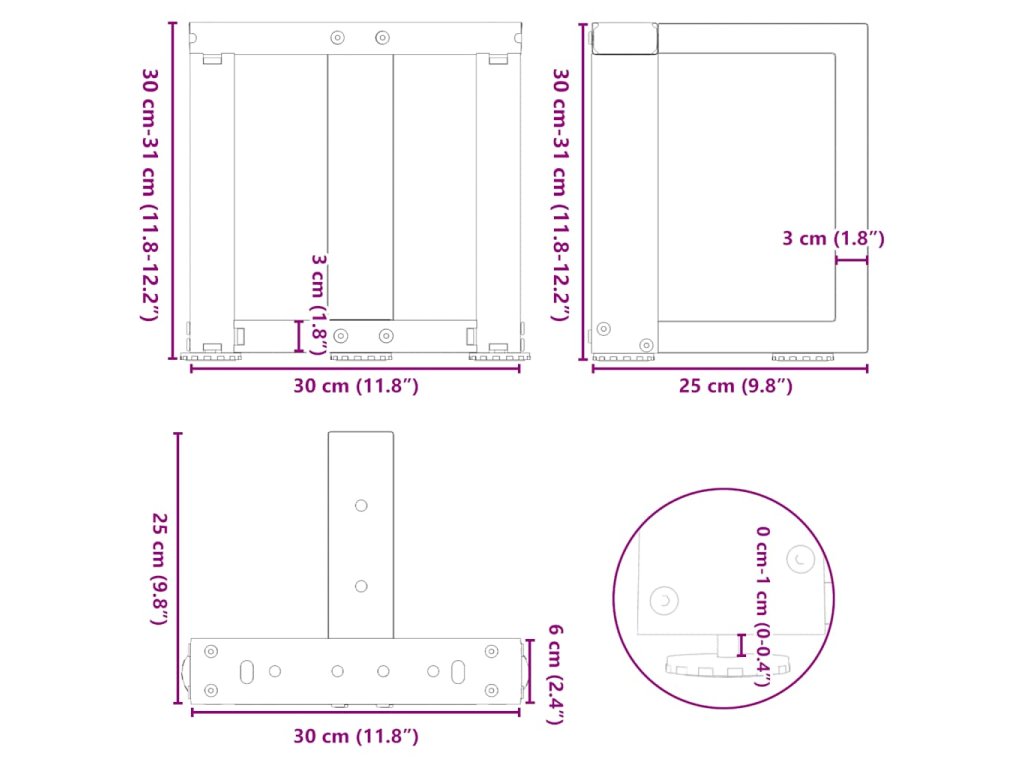 - Praktický design: Tato noha pracovní desky je vybavena nastavitelnými podpěrami, které zajišťují stabilitu i na nerovných podlahách a minimalizují poškrábání podlahy. Trubka má navíc předvrtané otvory a dodávané šrouby, které lze použít k upevnění nohy k desce stolu (nejsou součástí dodávky), což usnadňuje montáž.