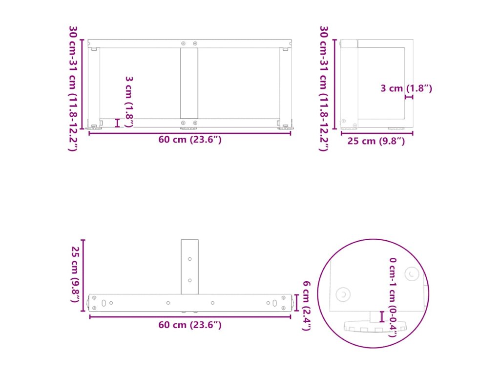 Nohy konferenčního stolku ve tvaru T, 2 ks, černé, 60 x 25 x (30-31) cm, ocel 4013012