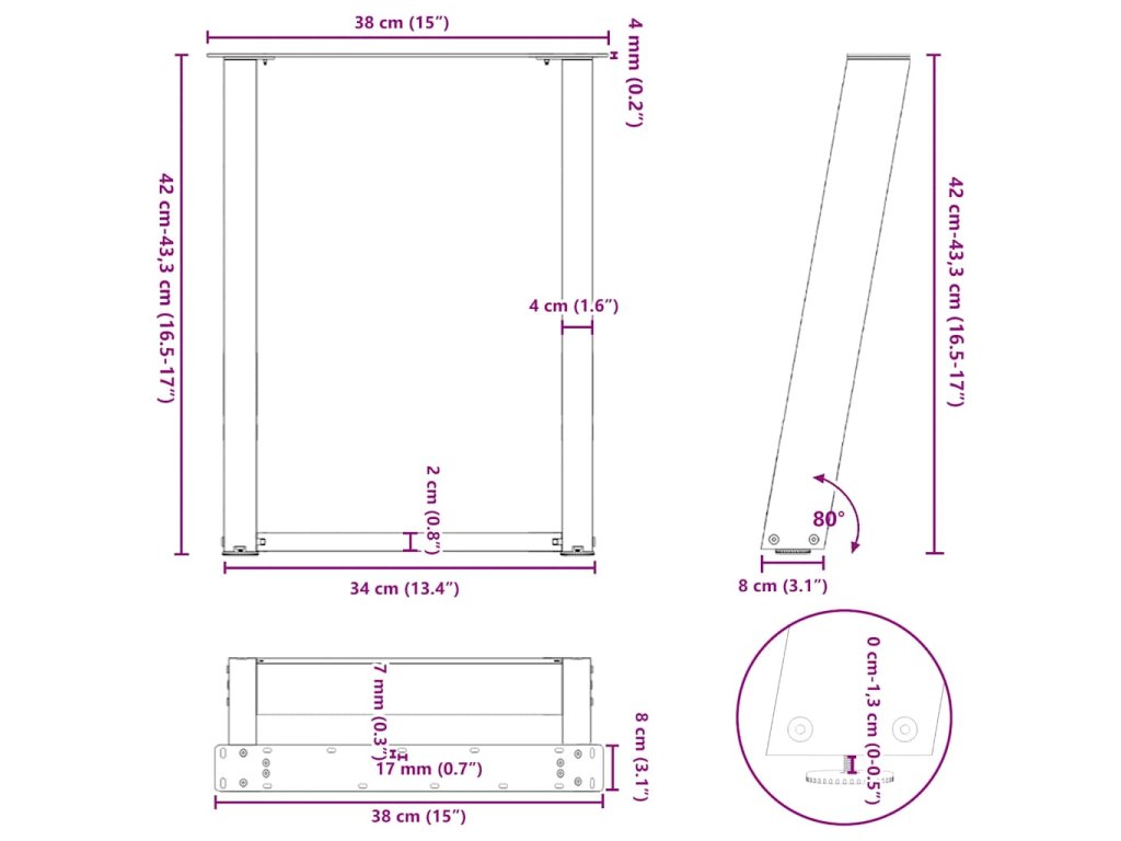 - Praktický design: Tato noha stolu je vybavena nastavitelnými podpěrami, které zajišťují stabilitu i na nerovných podlahách a minimalizují poškrábání podlahy. Konzola má navíc předvrtané otvory a dodávané šrouby, které lze použít k upevnění nohy k desce stolu (nejsou součástí dodávky), což usnadňuje montáž.