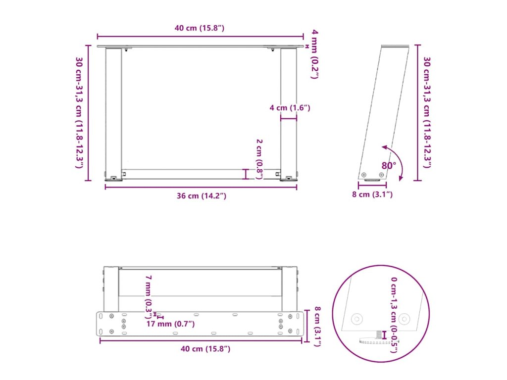 - Praktický design: Tato noha stolu je vybavena nastavitelnými podpěrami, které zajišťují stabilitu i na nerovných podlahách a minimalizují poškrábání podlahy. Konzola má navíc předvrtané otvory a dodávané šrouby, které lze použít k upevnění nohy k desce stolu (nejsou součástí dodávky), což usnadňuje montáž.