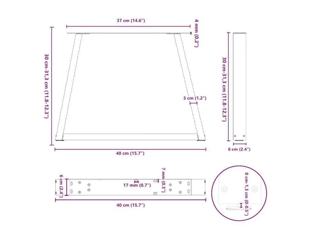 - Praktický design: Tato noha konferenčního stolku obsahuje nastavitelné nivelační prvky, které zajišťují stabilitu i na nerovných podlahách a minimalizují poškrábání podlahy. Konzola má navíc předvrtané otvory a šrouby, které jsou součástí dodávky, a které lze použít k upevnění nohy k desce stolu (nejsou součástí dodávky), což usnadňuje montáž.