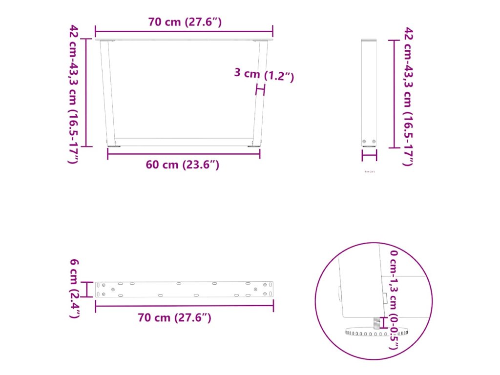 Nohy konferenčního stolku ve tvaru V, 2 ks, černé, 70 x (42-43,3) cm, ocel 4012636
