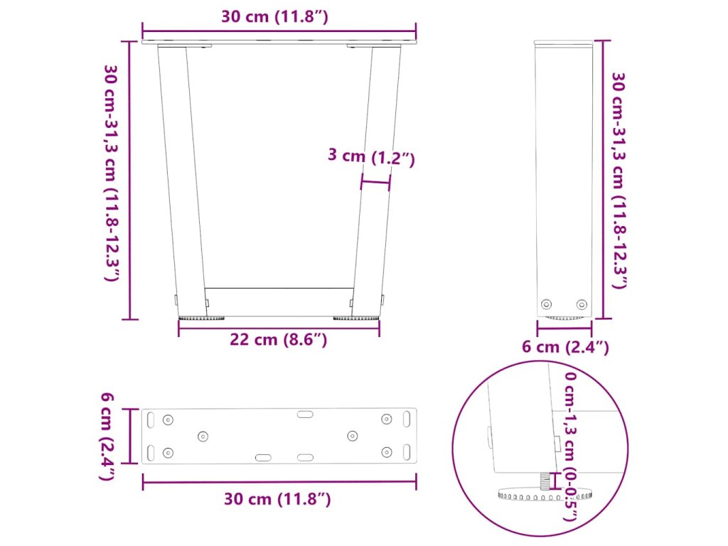 Nohy konferenčního stolku ve tvaru V, 2 ks, přírodní ocel, 30 x (30-31,3) cm, ocel 4012603