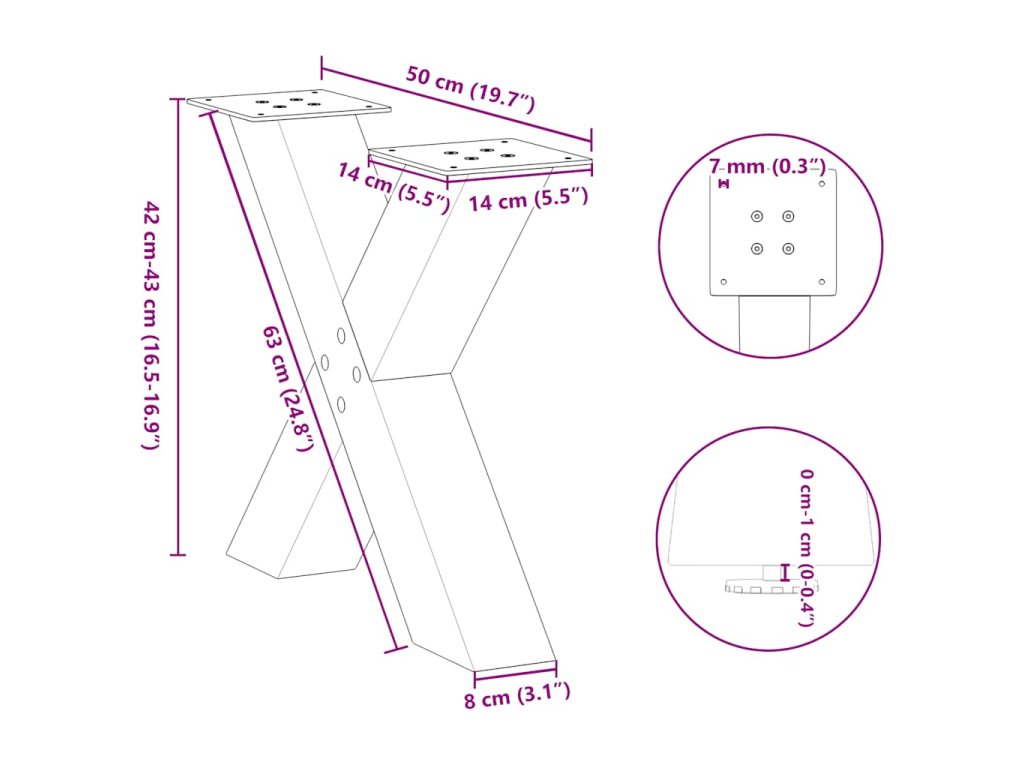 - Praktický design: Tato noha stolu je vybavena nastavitelnými podpěrami, které zajišťují stabilitu i na nerovných podlahách a minimalizují poškrábání podlahy. Konzola má navíc předvrtané otvory a dodávané šrouby, které lze použít k upevnění nohy k desce stolu (nejsou součástí dodávky), což usnadňuje montáž.