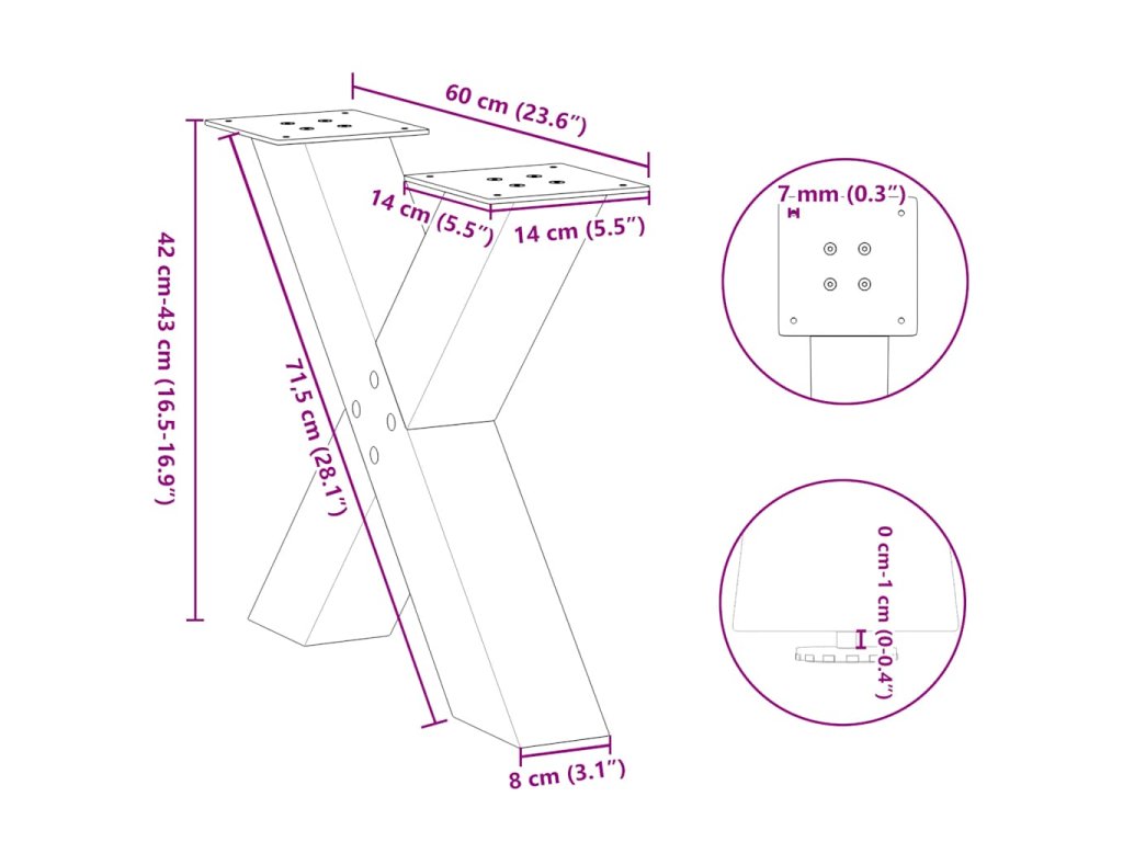 - Praktický design: Tato noha stolu je vybavena nastavitelnými podpěrami, které zajišťují stabilitu i na nerovných podlahách a minimalizují poškrábání podlahy. Konzola má navíc předvrtané otvory a dodávané šrouby, které lze použít k upevnění nohy k desce stolu (nejsou součástí dodávky), což usnadňuje montáž.
