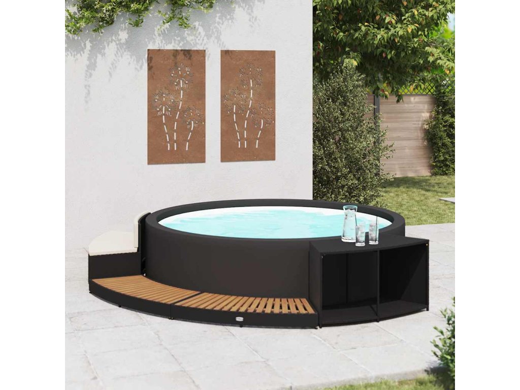 Obruba k vířivce černá polyratan a akáciové dřevo 310092