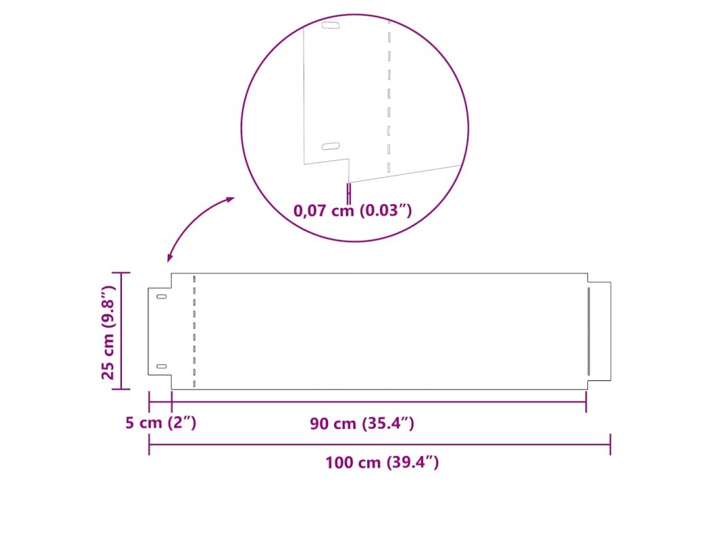 - Celkové rozměry: 100 x 25 x 0,07 cm (D x Š x V)