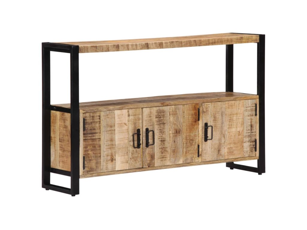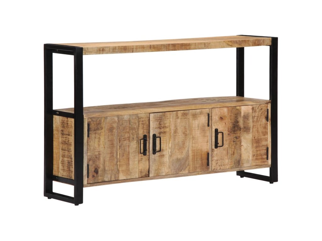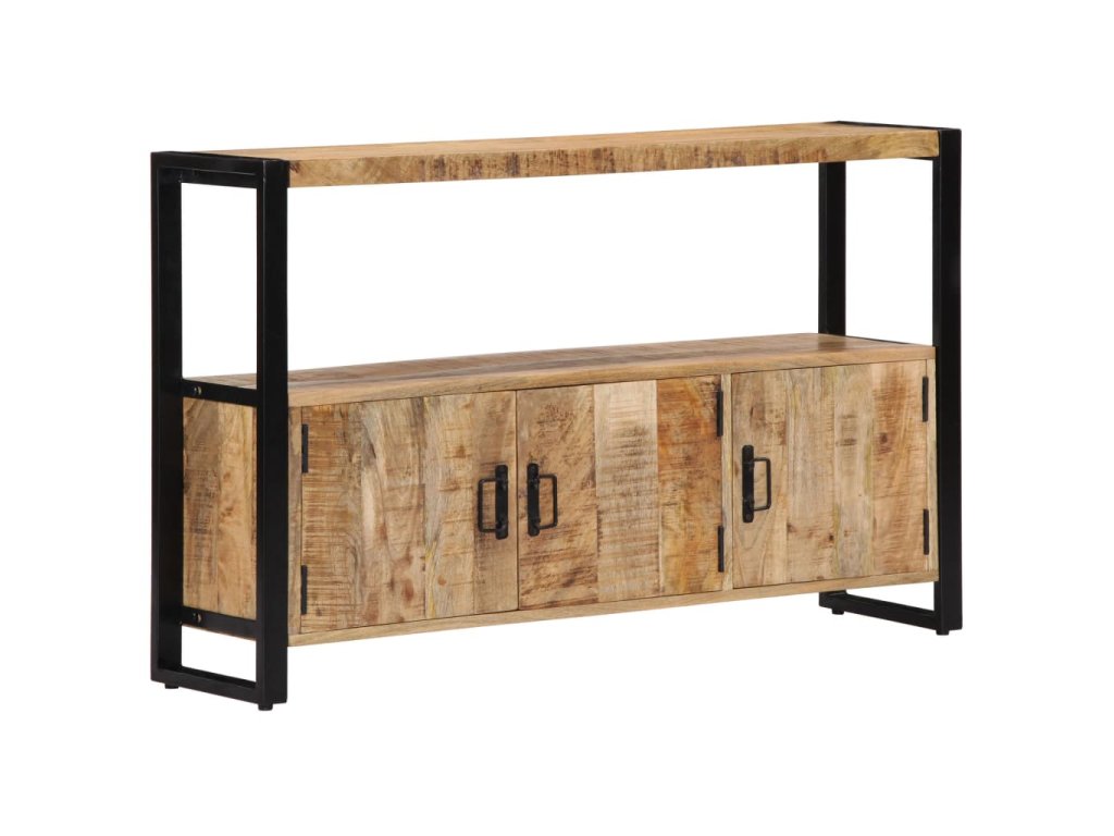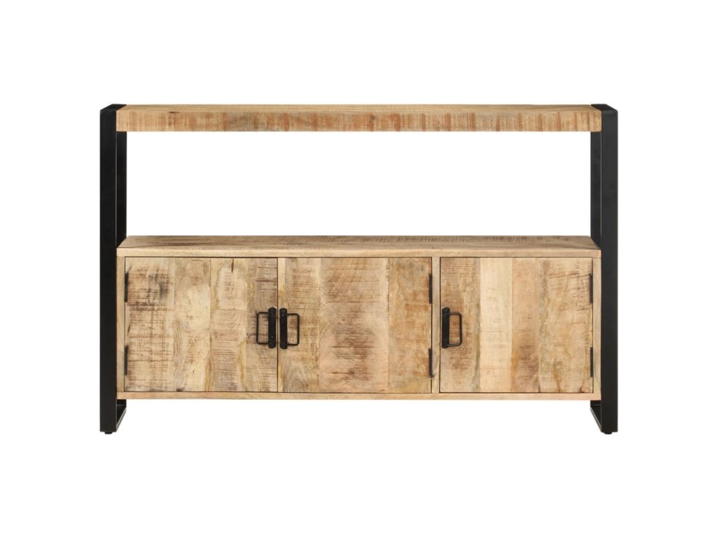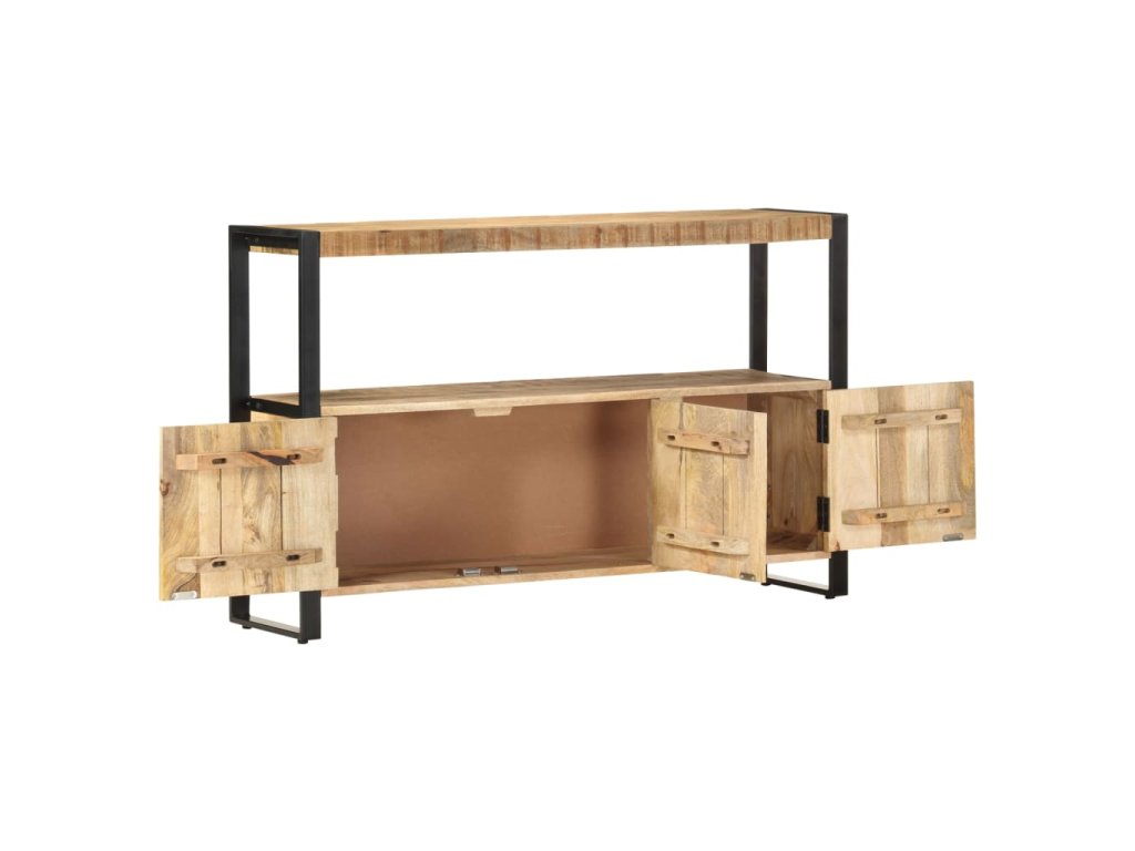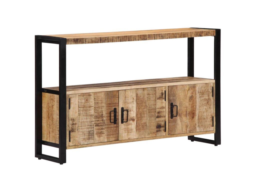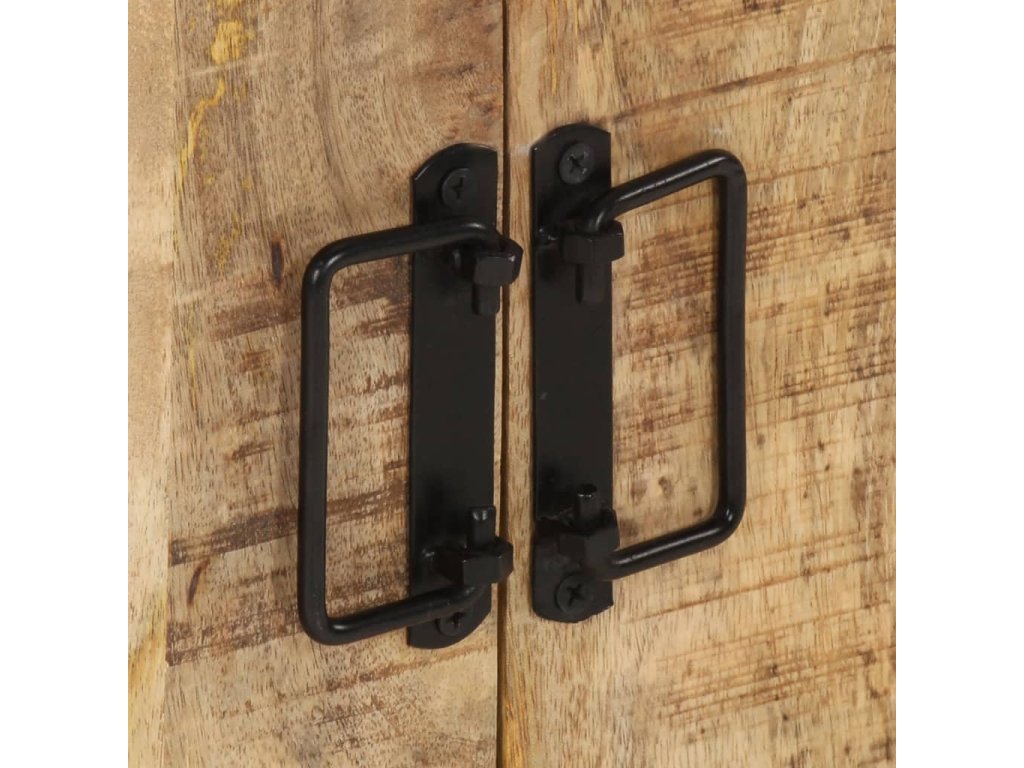 Skříňka je vyrobena z masivního mangovníkového dřeva, což je tvrdé dřevo s hustou texturou. Hrubé mangovníkové dřevo je nejen schopné unést značnou váhu, ale výborně také odolává opotřebení a působení času. Komoda s překrásným designem je proto stabilní, odolná a upoutá na první pohled. Precizní řemeslné zpracování je navíc zárukou toho, že byla každé fázi výrobního procesu věnována mimořádná péče, ať už šlo o leštění, natírání nebo lakování. Pevný ocelový rám s práškovým nástřikem zajišťuje výtečnou stabilitu a odolnost odkládací skříňky. Disponuje 2 zásuvkami se 3 dvířky a 1 přihrádkou, díky kterým vám nabídne spoustu místa, kam si můžete uložit svá multimediální zařízení, oblečení, knížky a všelijaké další věci.