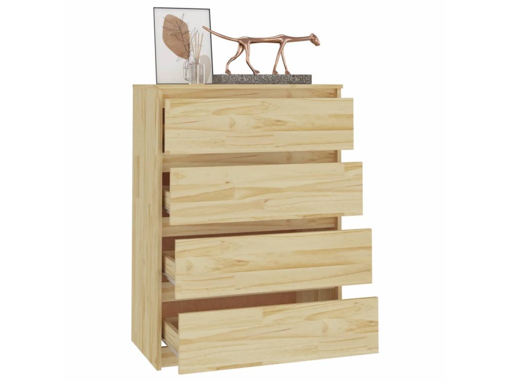 Zásuvková skříň je vyrobena z masivního borového dřeva, takže je stabilní a odolná. 4 zásuvky poskytují dostatek úložného prostoru pro knihy, oblečení a další předměty. Pevná horní deska je také ideální pro vystavení dekorativních předmětů, fotorámečků nebo pokojových rostlin.