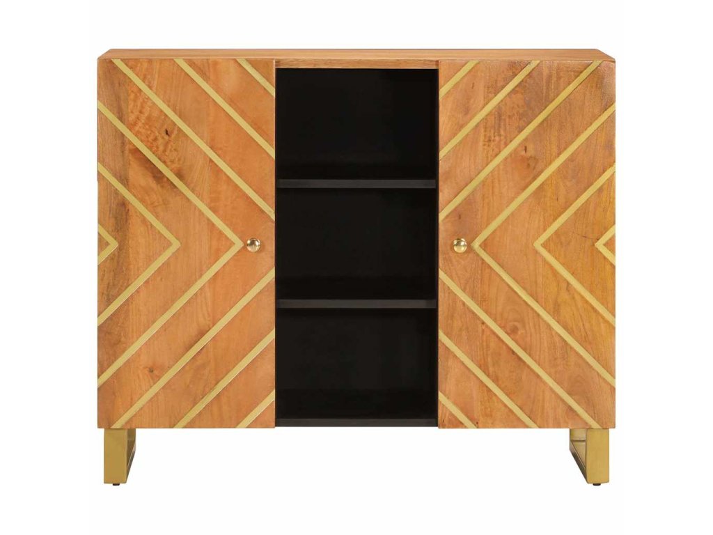 - Masivní mangovníkové dřevo: Masivní mangovníkové dřevo je pevné tropické tvrdé dřevo, ze kterého se vyrábí robustní nábytek. Krásná kresba dřeva propůjčuje každému kusu nábytku jeho jedinečný a od všech ostatních lehce odlišný vzhled. Skříňka je vyrobená z masivního mangovníkového dřeva, je tedy stabilní a odolná.