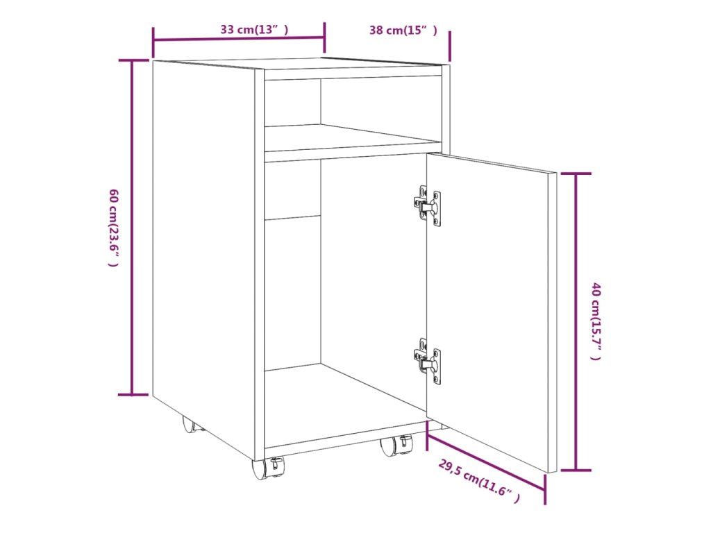 Odkládací skříňka na kolečkách šedá sonoma 33x38x60 cm kompozit 815853
