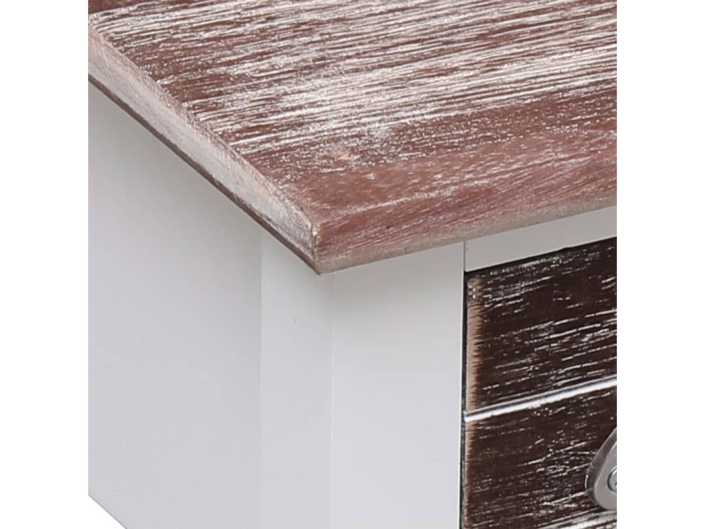 Tento konferenční stolek je zhotoven ze dřeva pavlovnie, je tedy velice odolný a stabilní. Stolek k pohovce nabízí úložný prostor se 2 zásuvkami a spodní poličkou. Robustní stolová deska skvěle poslouží k vystavení dekorativních předmětů, zarámovaných fotografií nebo pokojových květin. Očistíte ho snadno navlhčeným hadříkem. Sestavení odkládacího stolku je snadné.