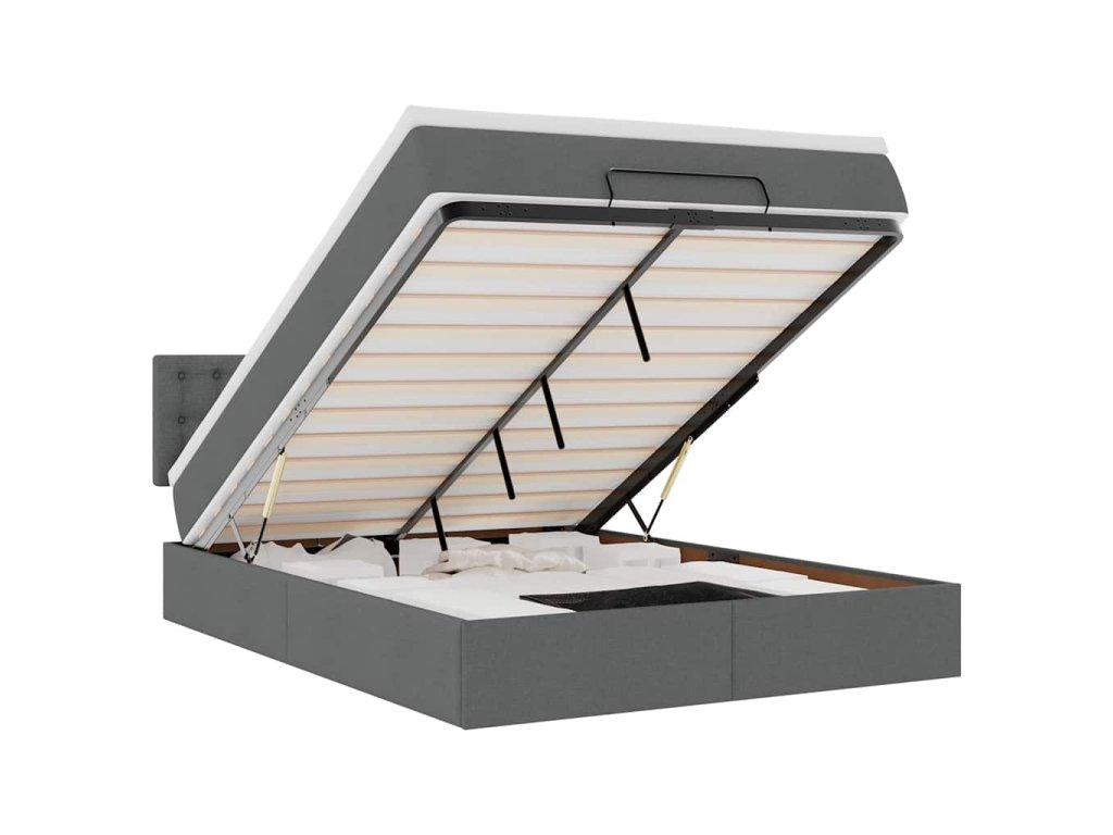 - Dostatek úložného prostoru pod postelí: Díky hydraulickému zvedacímu mechanismu nabízí rám postele dostatek úložného prostoru pod postelí, čímž maximalizuje prostor, aniž by zabíral další podlahovou plochu. Jednoduchým zatažením za rukojeť se roštová základna hladce zvedne a umožní vám rychle a bez námahy vyndat vaše věci.