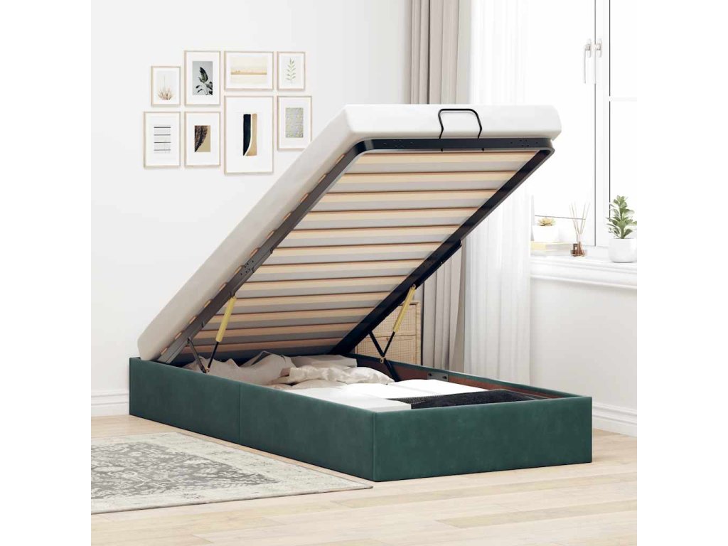 Osmanský rám postele bez matrace tmavě zelené 90x200 cm samet 3310940