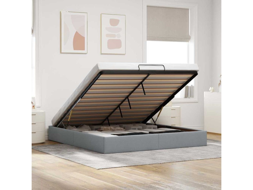 - Pohodlný zvedací mechanismus: Integrovaný hydraulický zvedací mechanismus umožňuje snadný přístup k vašim věcem uloženým pod postelí. Jednoduchým zatažením za rukojeť se základna roštu hladce zvedne a umožní vám rychle a bez námahy vyndat vaše věci.