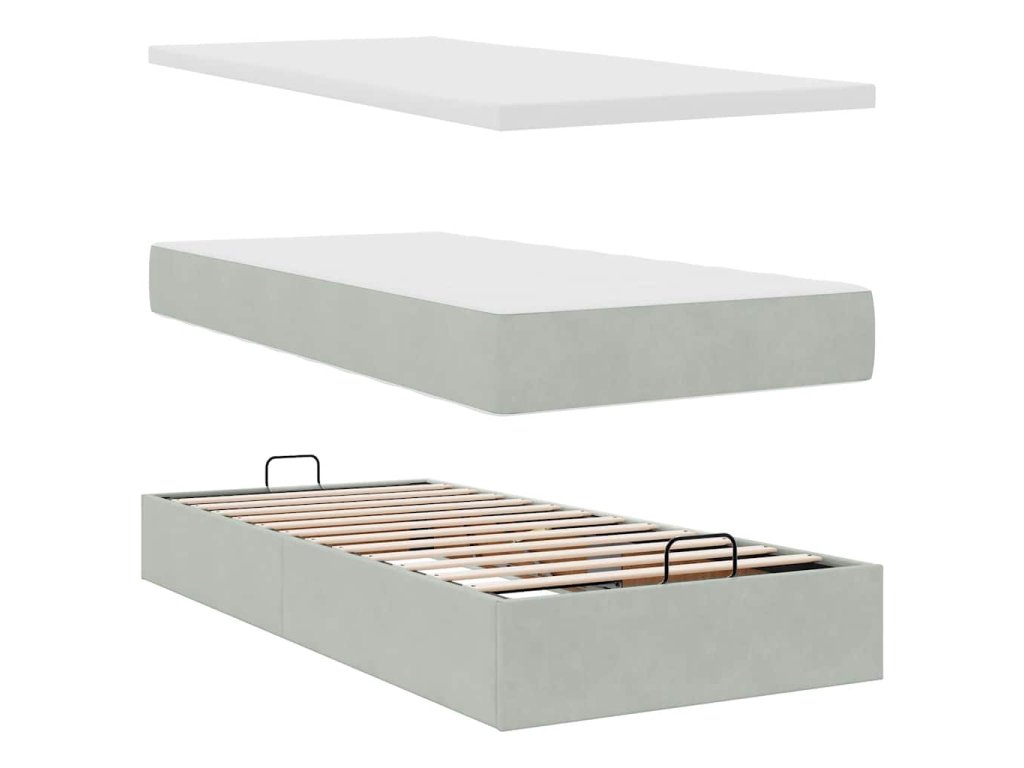 Osmanský rám postele s matrací světle šedá 90x200cm samet 3311819