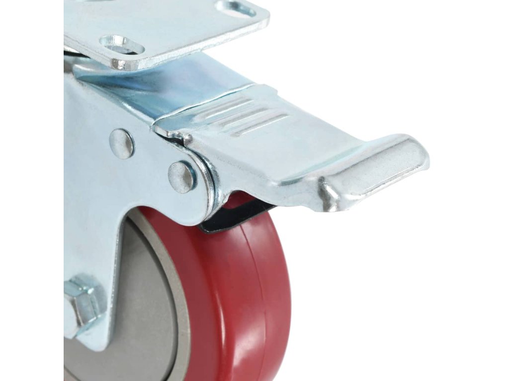 Tato kolečka jsou vyrobena z PP (polypropylenu), který je známý pro svou schopnost pohlcovat nárazy a vibrace. Ať už tedy kolečka namontujete na cokoliv, budete to moci přesouvat hladce a v tichosti. Jejich hladký povrch navíc ochrání vaši podlahu před poškrábáním. Zinkem potažený železný rám je odolný proti rzi, dodává kolečkům na odolnosti a prodlužuje jejich životnost. Tato otočná kolečka jsou vybavená dvojitou brzdou pro flexibilnější ovládání. Každé kolečko má maximální nosnost až 80 kg.