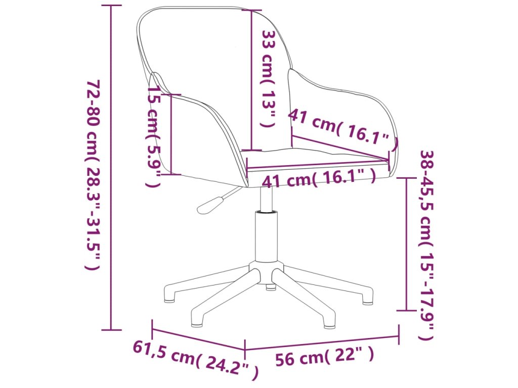 - Celkové rozměry: 56 x 61,5 x (72–80) cm (Š x H x V)