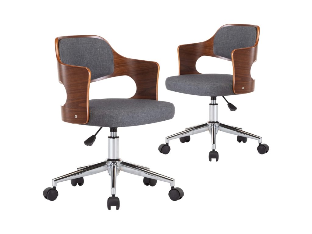 Sedák i opěradlo jsou čalouněné měkkou látkou, aby se vám na nich dobře sedělo. Dřevěný rám zvyšuje stabilitu nábytku. Sedák s opěradlem poskytují vašim zádům skvělou oporu a snižují tlak na páteř. 5 pojezdových koleček zaručuje nenáročné přesouvání židle, zatímco mechanismus s plynovým pístem zase umožňuje upravit její výšku. Tyto otočné židle navíc stylově oživí každou domácnost i kancelář.