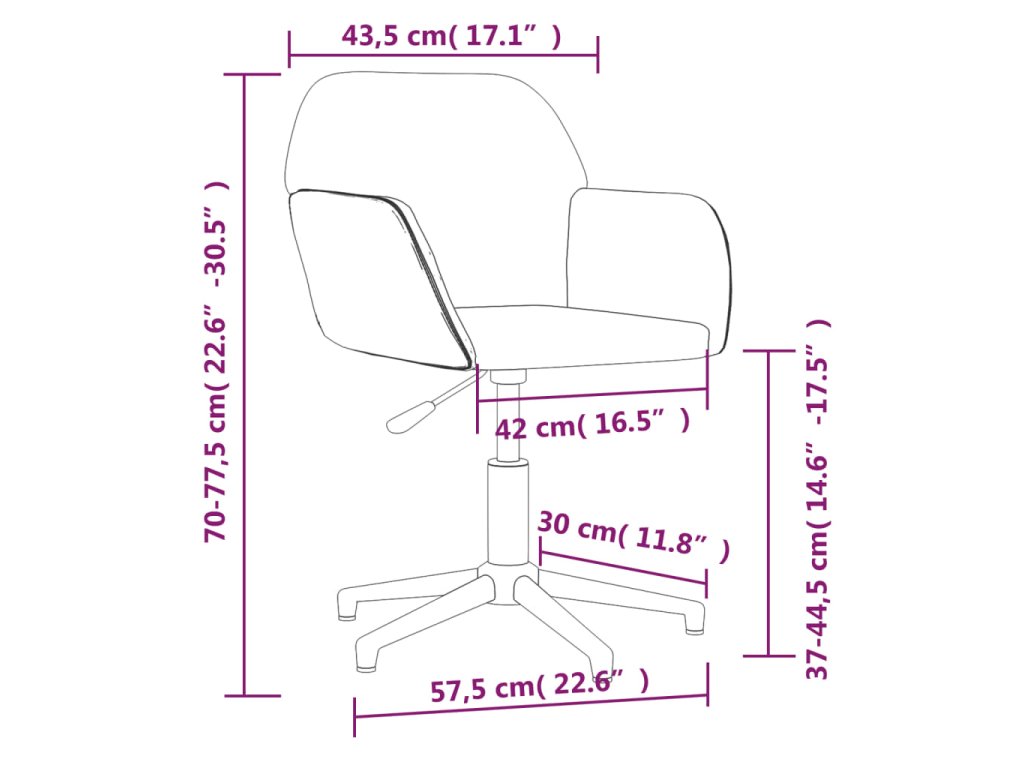 - Celkové rozměry: 53,5 x 57 x (70–77,5) cm (Š x H x V)