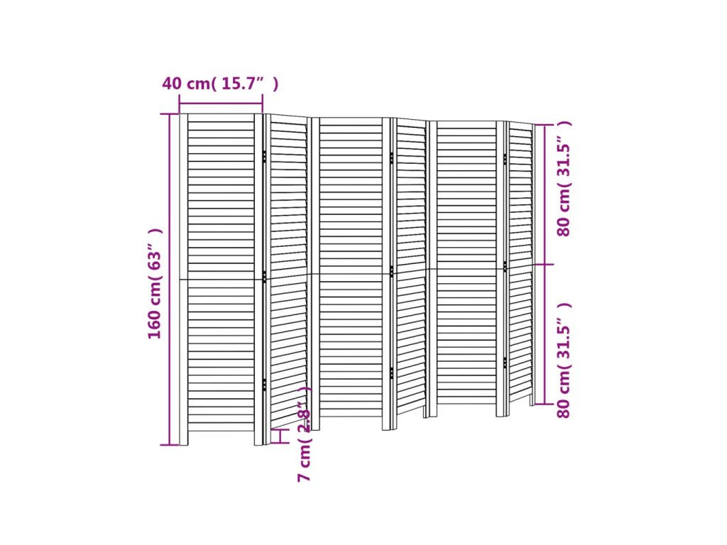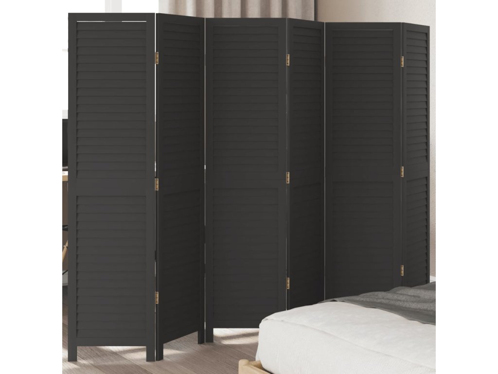 Paraván 6dílný černý masivní dřevo pavlovnie 358857