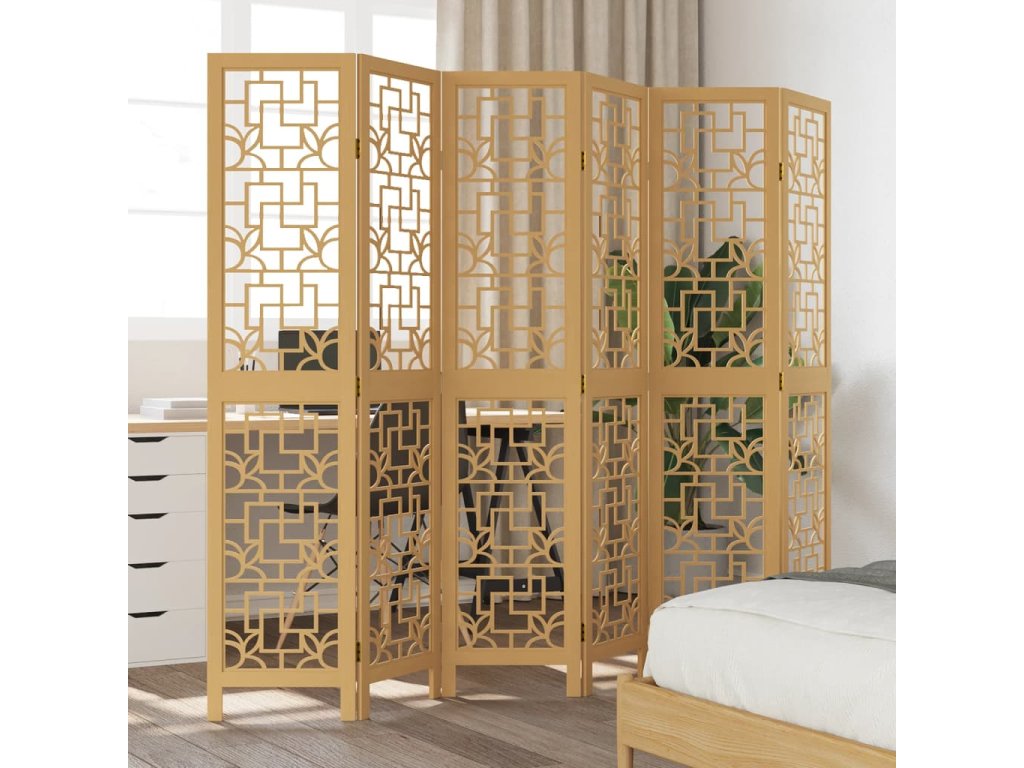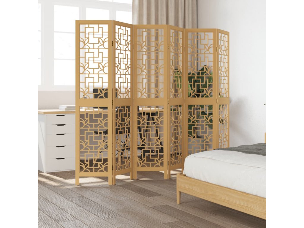 Paraván 6dílný hnědý masivní dřevo pavlovnie 358874