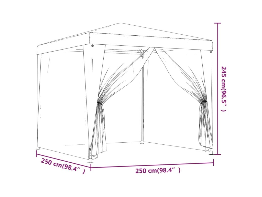 - Rozměry: 250 x 250 x 245 cm (D x Š x V)