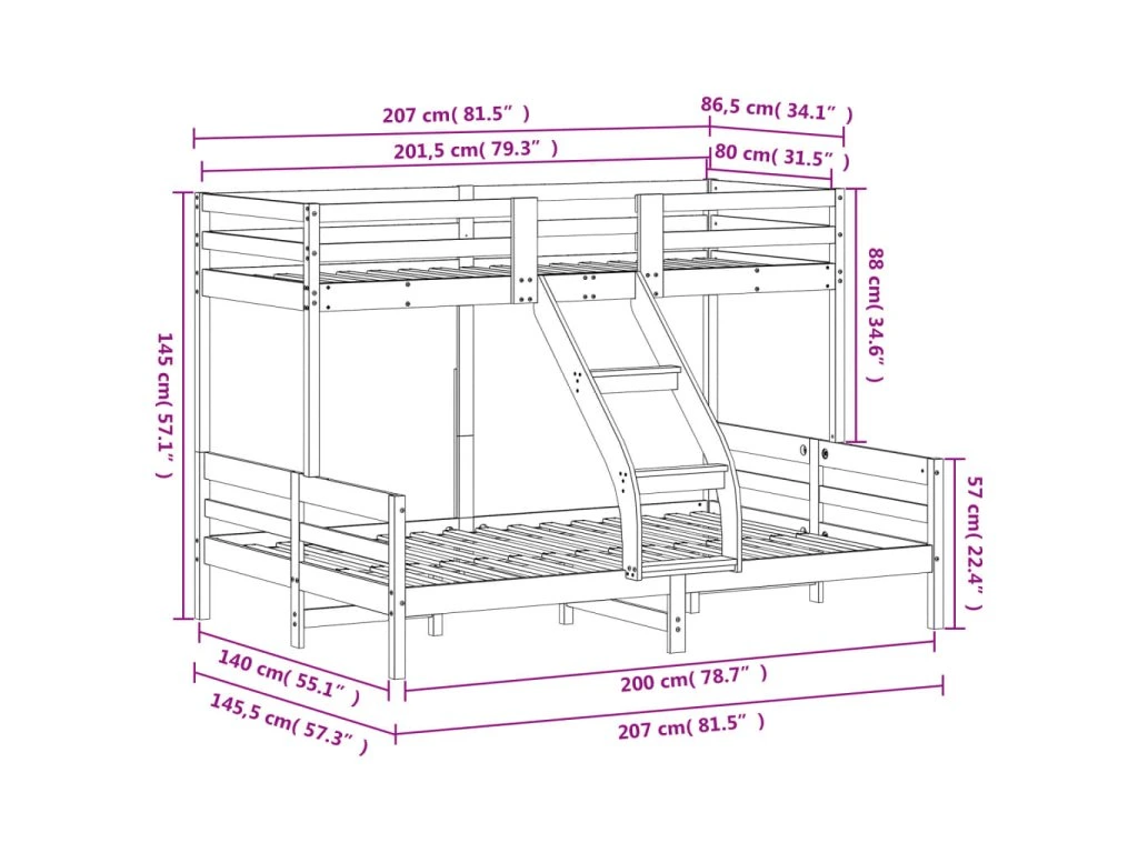 Patrová postel 80 x 200/140 x 200 cm bílá masivní borové dřevo 3207166