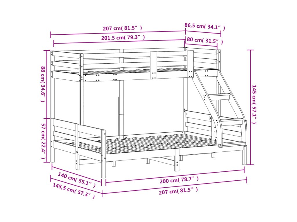 Patrová postel 80 x 200/140 x 200 cm voskově hnědá borové dřevo 3207184