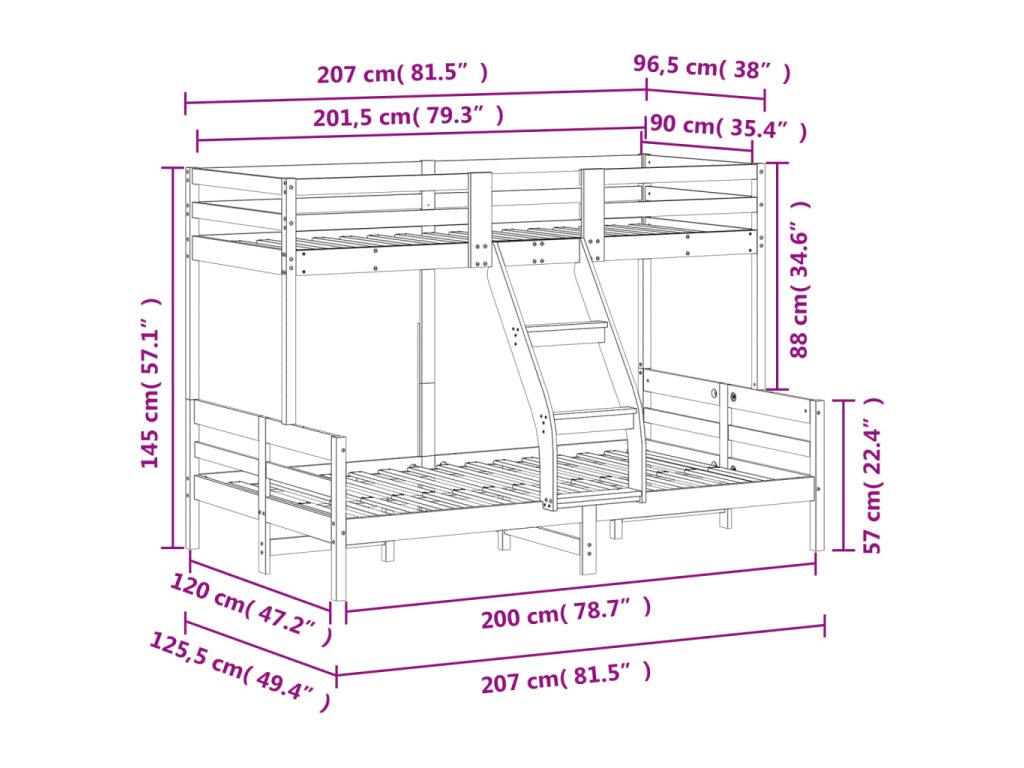 Patrová postel 90 x 200/120 x 200 cm bílá masivní borové dřevo 3207170