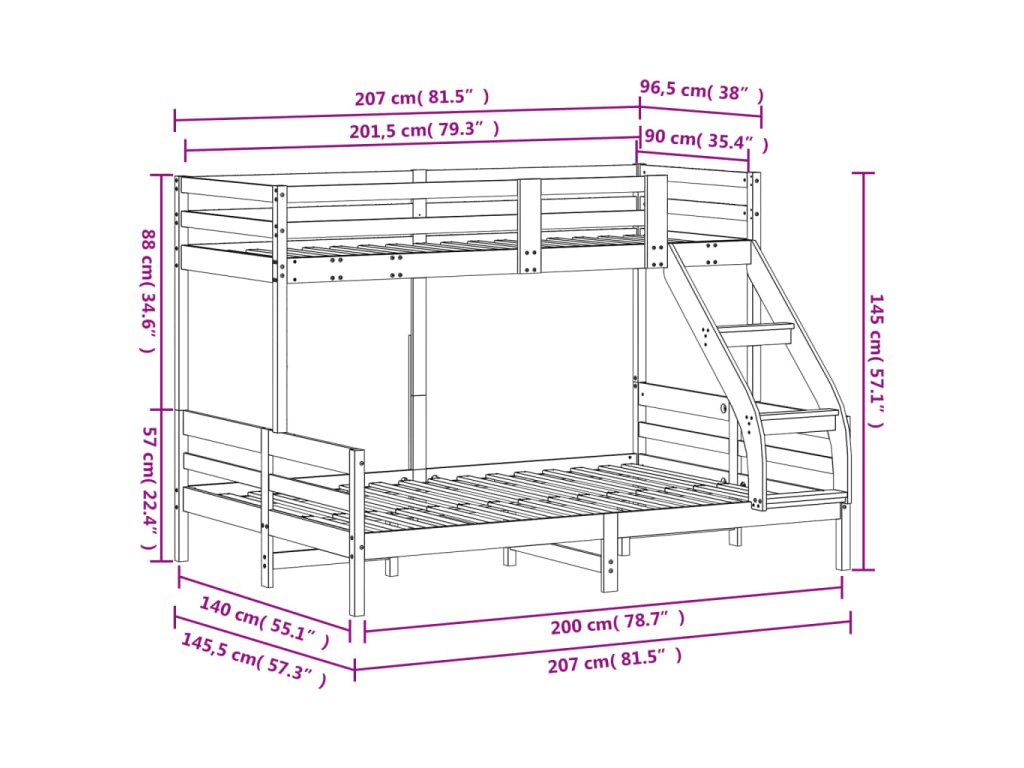 Patrová postel 90 x 200/140 x 200 cm bílá masivní borové dřevo 3207190