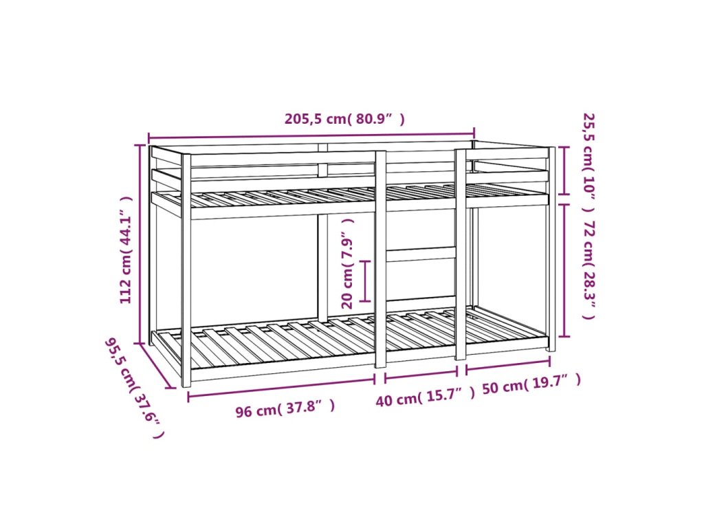 Patrová postel bez matrace 90 x 200 cm masivní borové dřevo 3206504