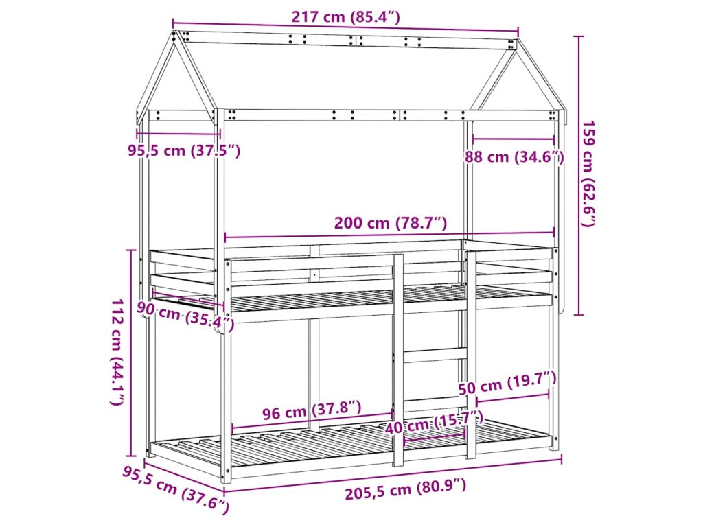 Patrová postel bez matrace 90 x 200 cm masivní borové dřevo 3282116