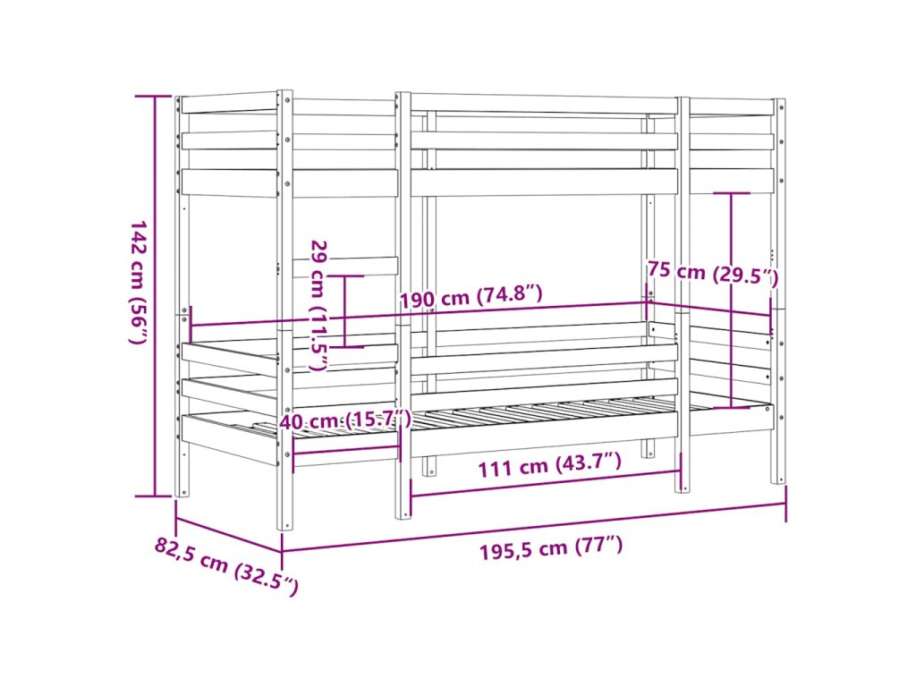 - Vhodné do omezeného prostoru: Patrová postel z masivního dřeva je skvělou volbou do každé místnosti s omezeným prostorem a poskytuje dvě samostatná lůžka s kompaktním designem.