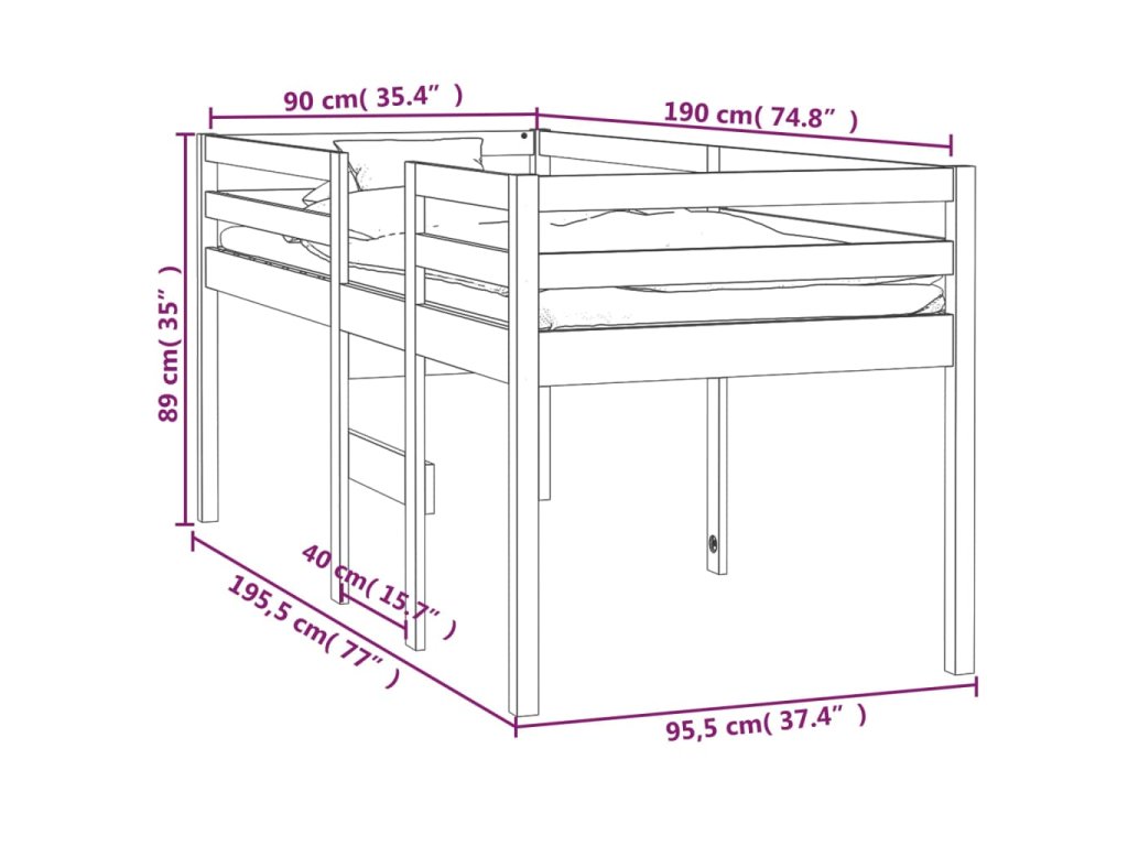 Patrová postel bílá 90 x 190 cm masivní borové dřevo 821615