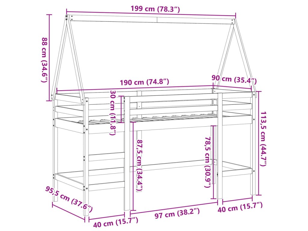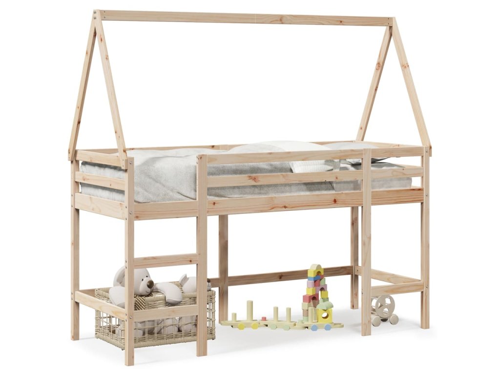 Patrová postel s žebříkem a střechou 90 x 190 cm borovice 3282114