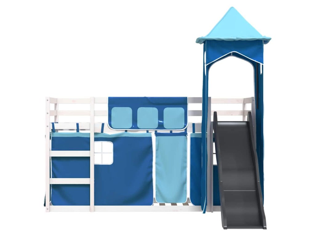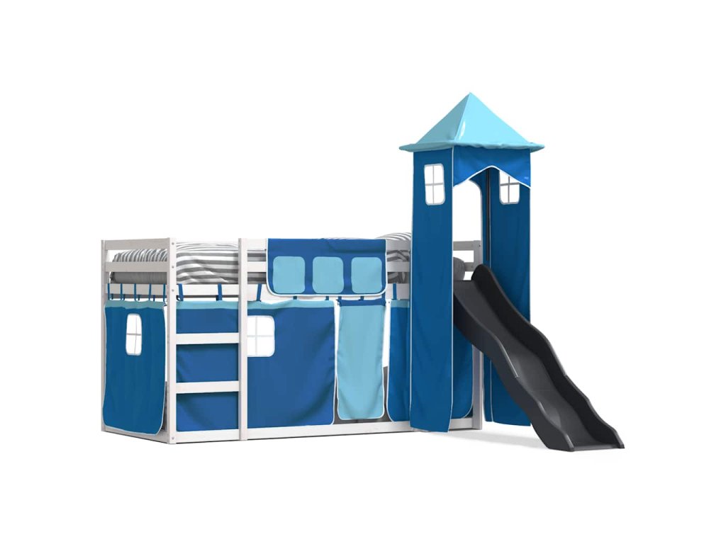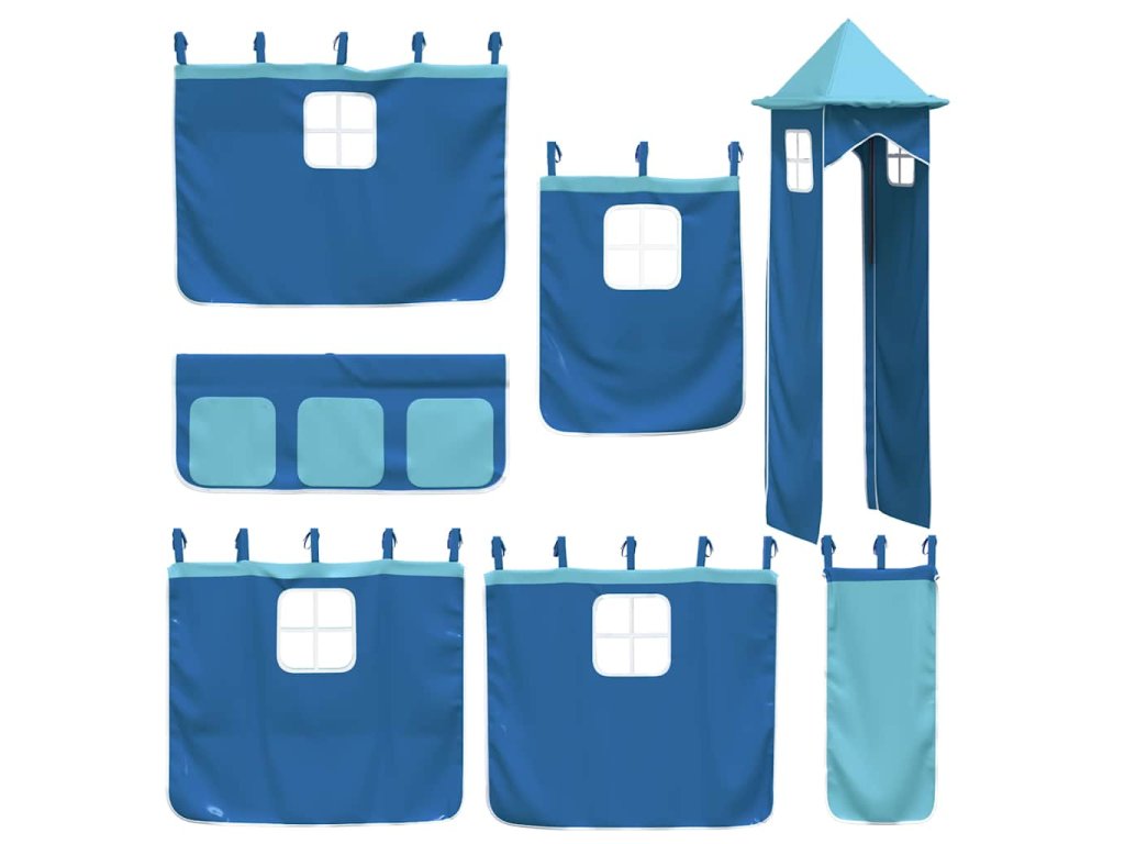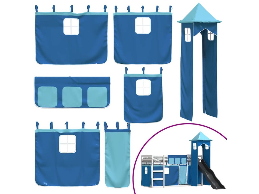 Patrová postel se skluzavkou a závěsy modrá 90 x 190 cm 3284210