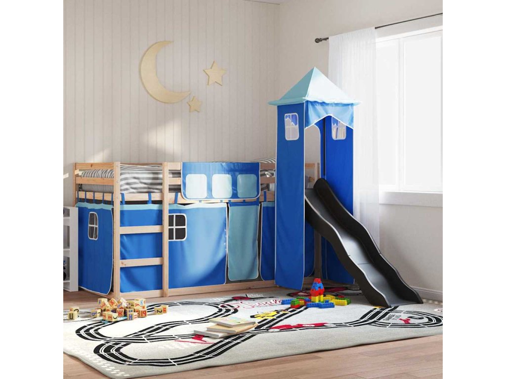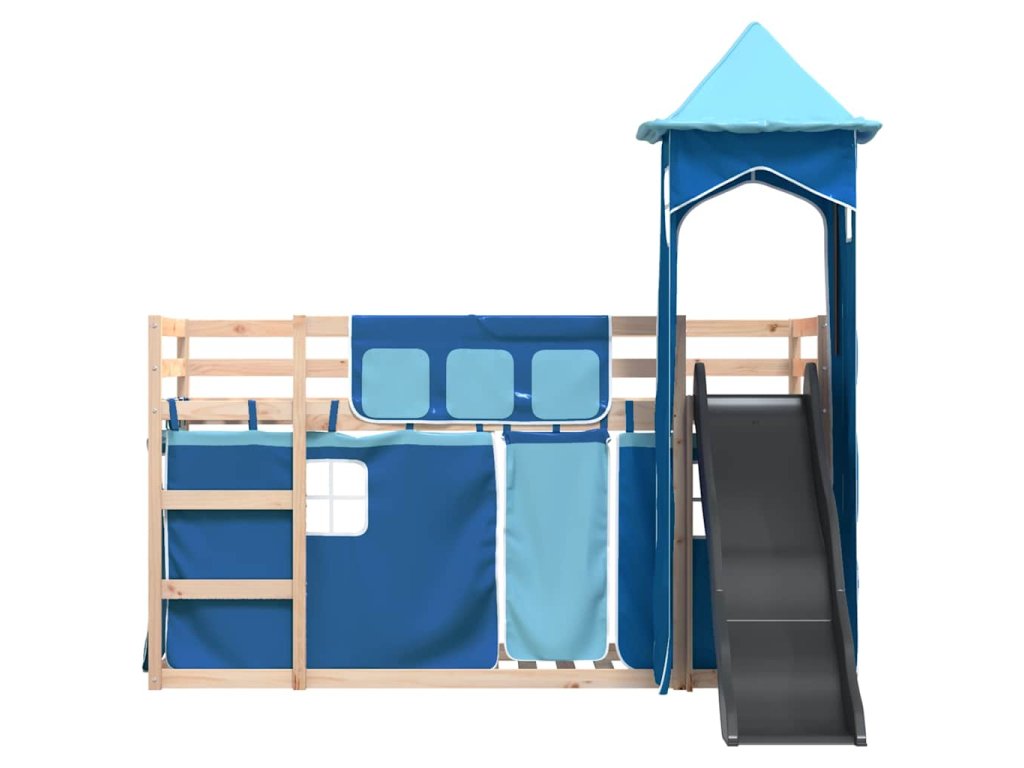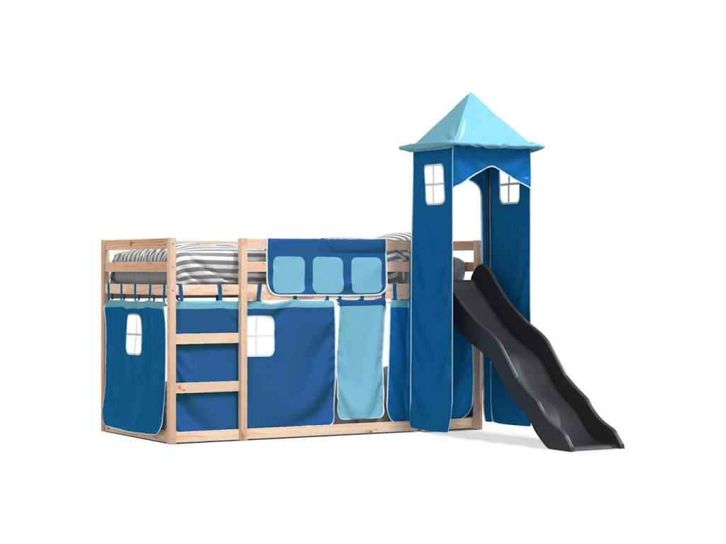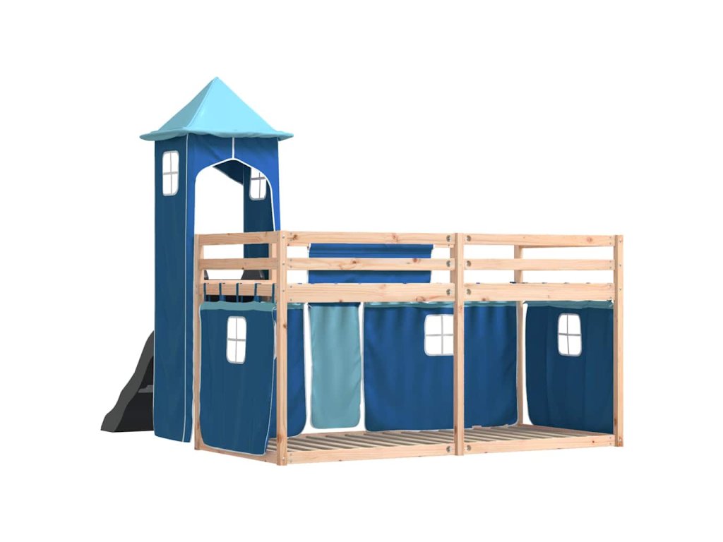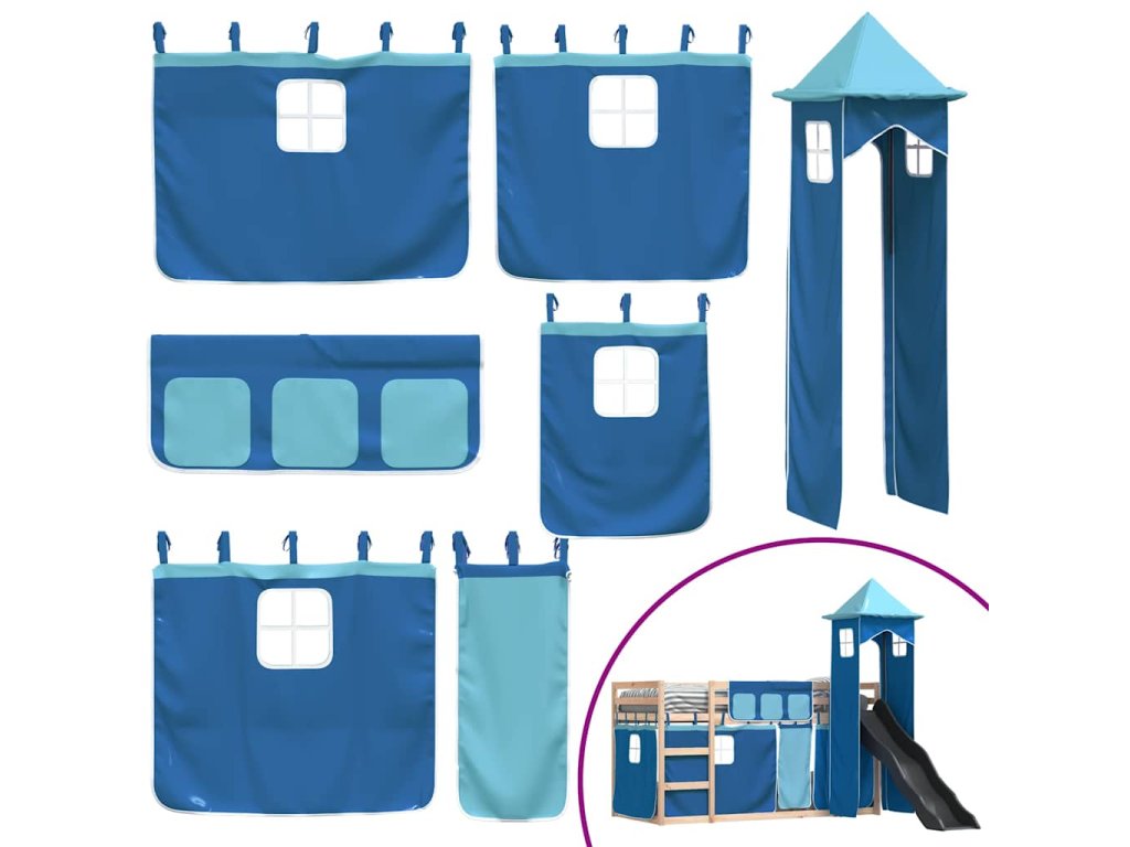 Patrová postel se skluzavkou a závěsy modrá 90 x 200 cm 3284189