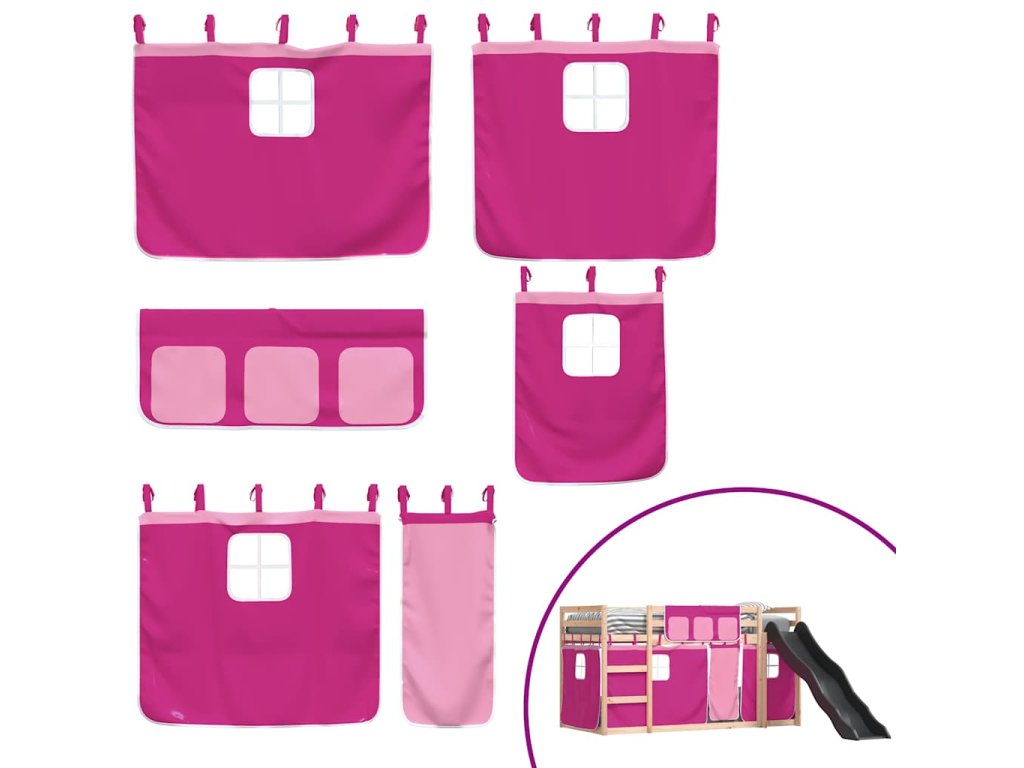 Patrová postel se skluzavkou a závěsy růžová 90 x 200 cm 3284109