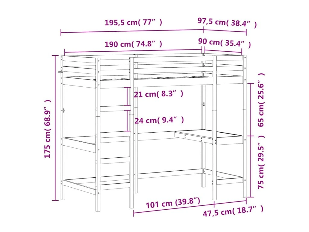 - Bezpečný design: Patrová postel s psacím stolem je navržena s důrazem na bezpečnost. Její součástí je zábradlí, aby uživatel nespadl z postele, když spí.