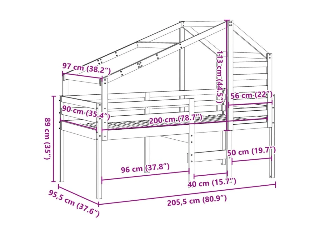 - Bezpečný design: Zabudovaný žebřík usnadňuje vylézání do postele a slézání z ní. Ochranná zábrana zajistí, že vaše ratolesti budou během spánku v bezpečí.