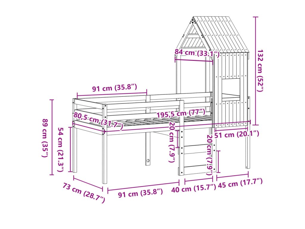 Patrová postel se střechou voskově hnědá 75 x 190 cm borovice 3282021