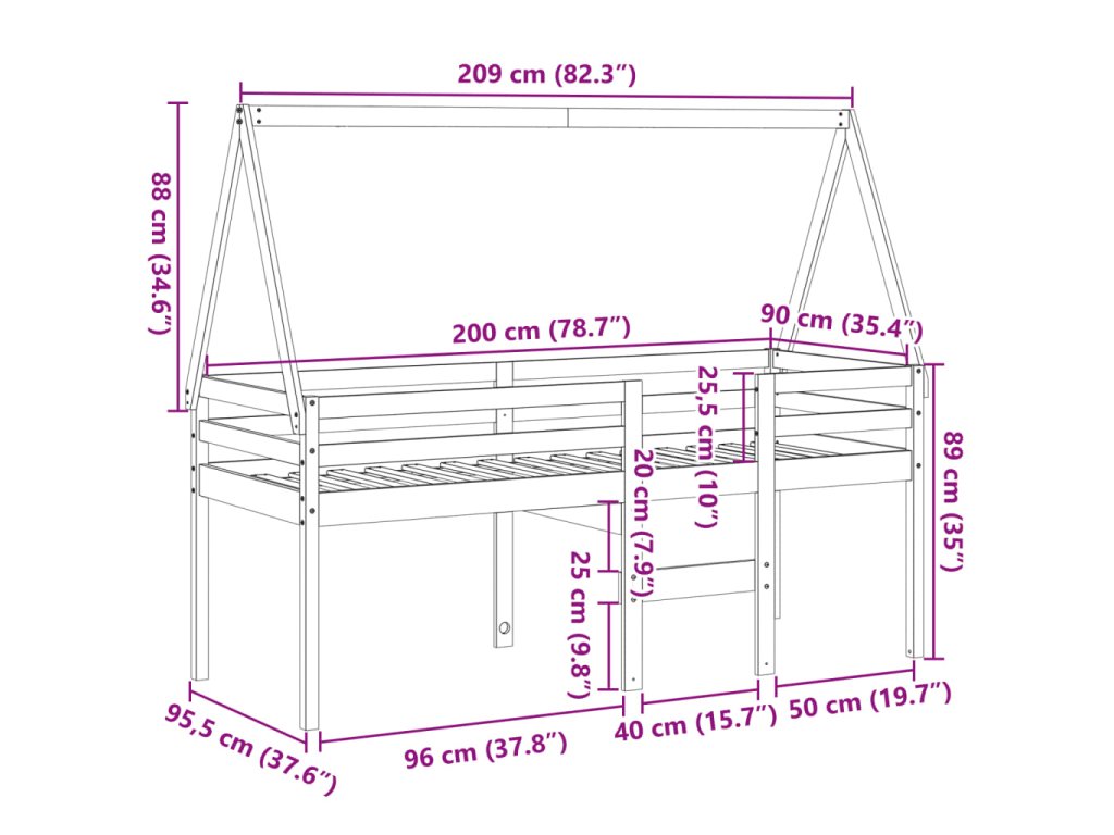 Patrová postel se střechou voskově hnědá 90 x 200 cm borovice 3282094
