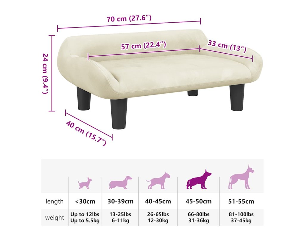 Pelíšek pro psy krémový 70 x 40 x 24 cm samet 171957