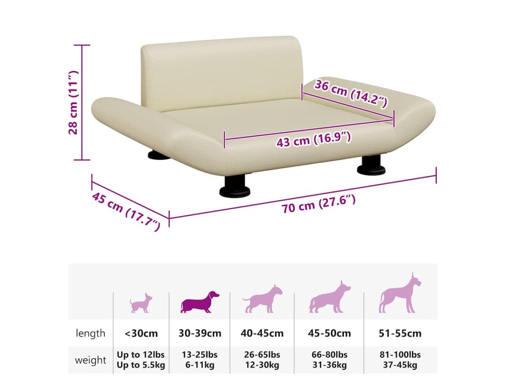 Pelíšek pro psy krémový 70 x 45 x 28 cm umělá kůže 172002