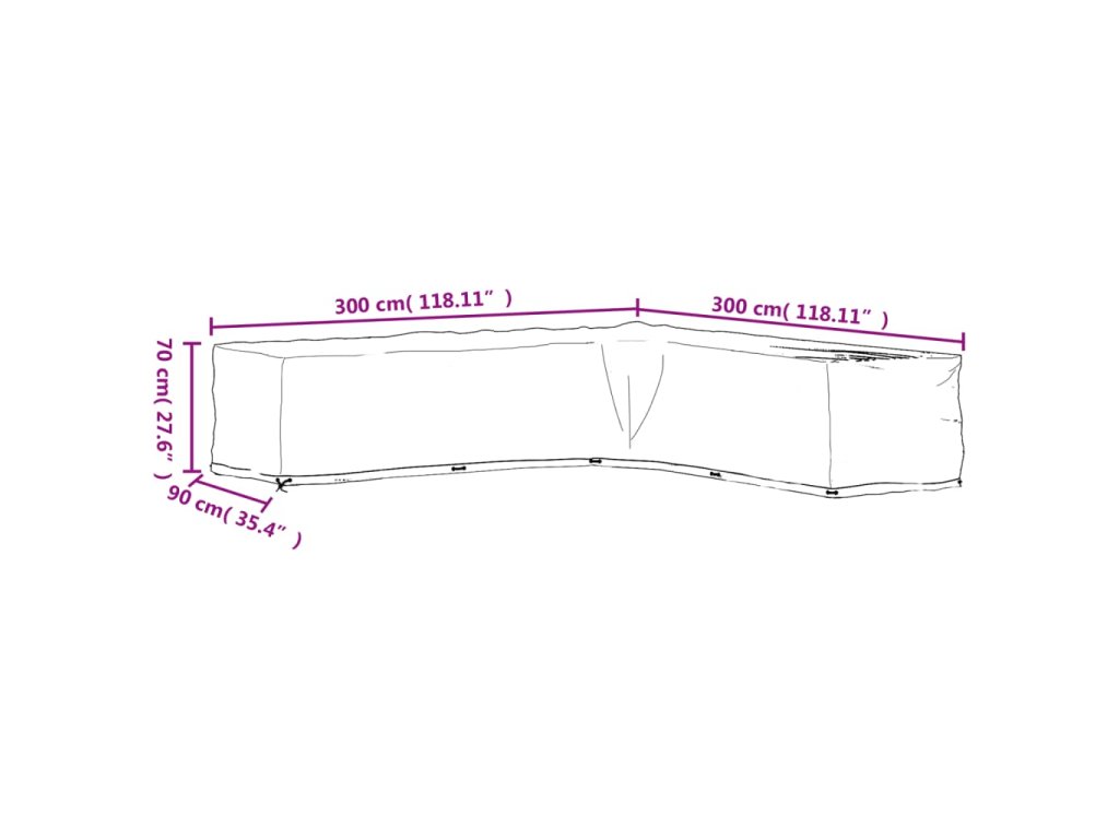 Plachta na zahradní nábytek tvar L 20 oček 300 x 300 x 70 cm 319321