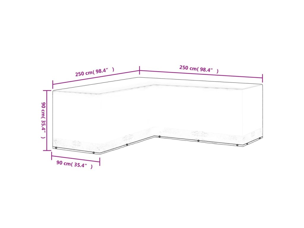 Plachta na zahradní nábytek ve tvaru L 12 oček 250x250x90 cm 48631