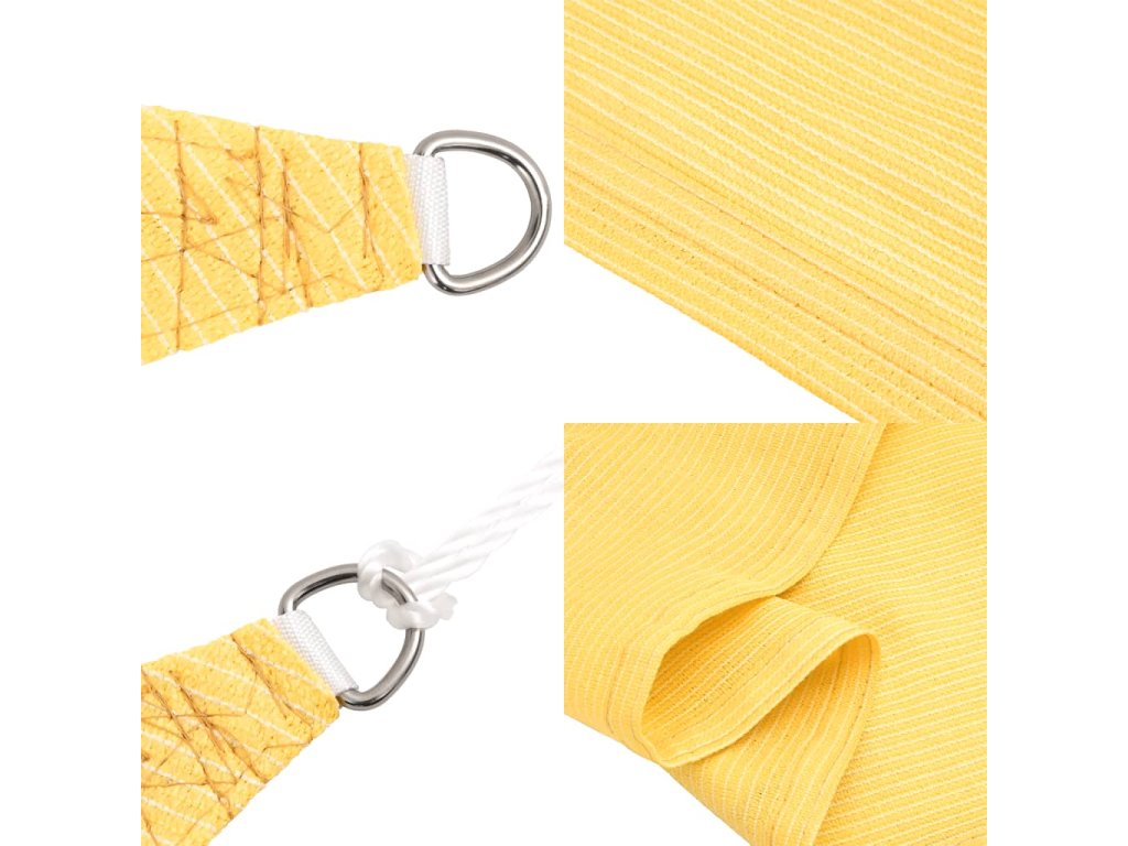 Sluneční plachta vyrobená ze 100% HDPE (vysokohustotní polyethylen) vás chrání před přímým slunečním zářením, umožňuje dostatečný průchod vzduchu a je propustná pro vodu. HDPE je speciálně upraven, takže je odolný proti plísním a UV záření. Slunečník se snadno sestavuje pomocí nerezových upevňovacích prvků na každém rohu a přiložených lanek.