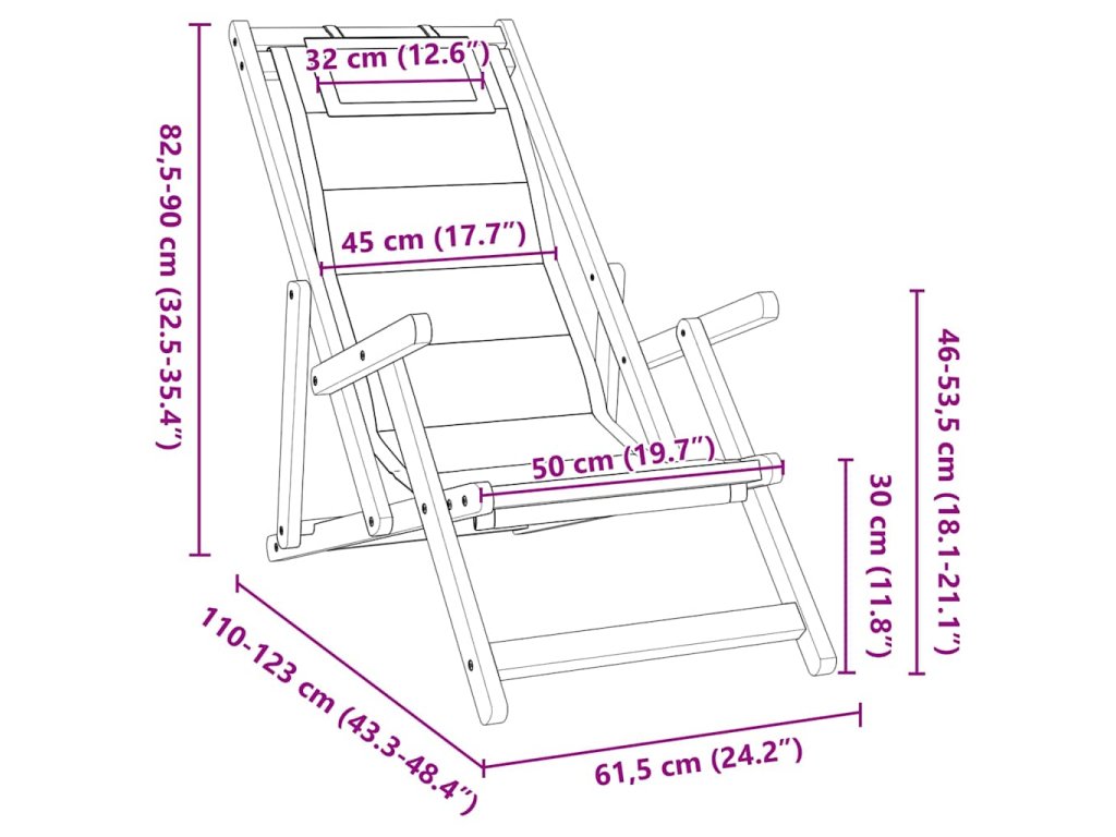 - Doporučené použití: Tato židle je ideální pro zahrady, terasy či pláže, navržena pro maximální variabilitu. Je snadno přenosná, což ji činí skvělým společníkem pro každého, kdo si chce užít venkovní relaxaci, ať už jde o opalování, večerní setkání nebo jen tak lenošení.